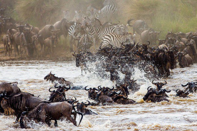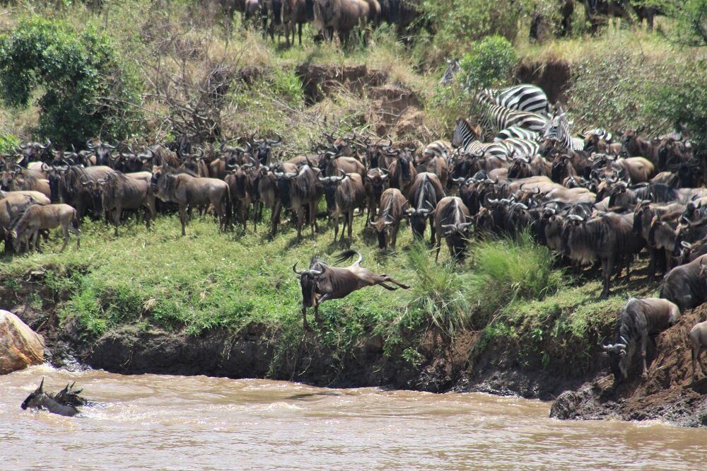 The Masai Mara is famous for dramatic river crossings.